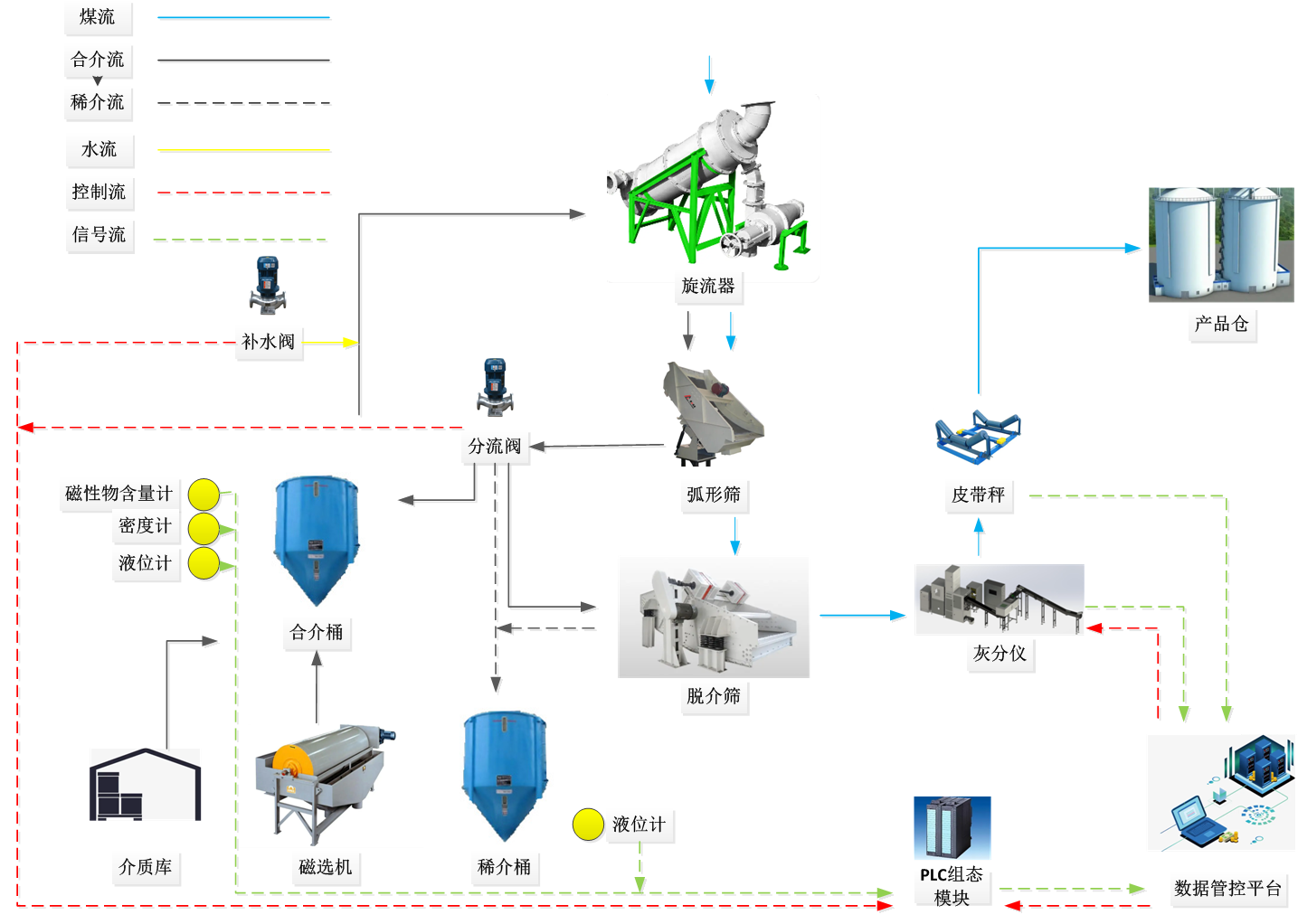 智能重介密控系统:通过介质密度精准调节与闭环控制,提升分选精度与精煤产品质量。