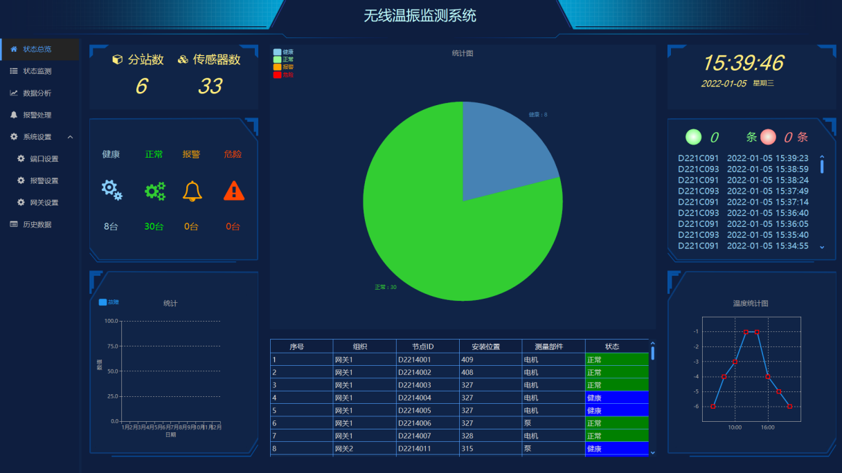 设备温振故障监测系统:实时采集设备温度与振动数据,构建预测性维护机制,防范故障于未然。