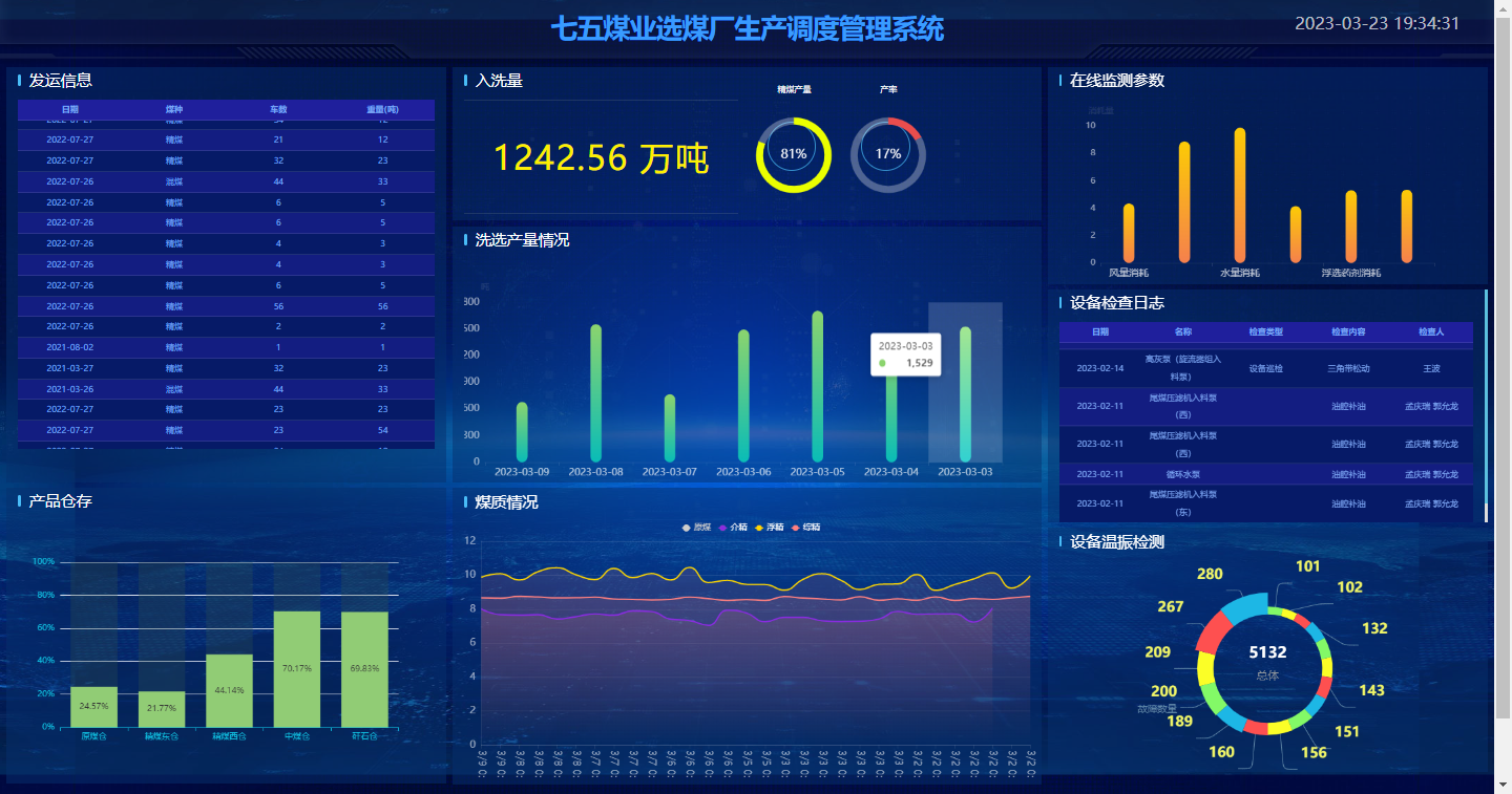 (2)子平台:聚焦各选煤厂生产场景,实时采集生产、设备、能耗、安全等数据,支撑厂区精细化管理,同时向总平台同步关键信息,形成 “厂区联动、上下协同” 的管理闭环。