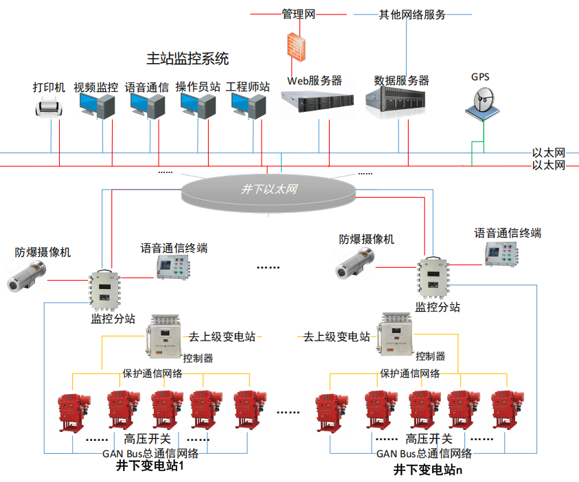 电力监控及防越级跳闸系统,是我公司为适应煤矿电网的特殊需求而研发的集继电保护、测量控制、电能计量和网络通信功能于一体的矿用电站综合自动化系统,该系统融入了基于网络智能识别的电流保护技术、光纤差动电流保护技术、以及改进型零序导纳原理的漏电保护技术和集成的变电站自动化监控等多项创新技术,整体系统具有高效、稳定、可靠的特点。在设计过程中,通过选用具备行业前沿技术的硬件设备,以及拥有先进算法和高效运行机制的软件系统,以保障整体性能的卓越表现。同时,借鉴了地面变电站综合自动化系统成熟的软硬件技术,结合先进的网络保护技术、网络通信技术及电力监控技术,实现了井下与地面电网一体化的继电保护防越级跳闸系统、集成的电力监控系统和计量管理系统。
