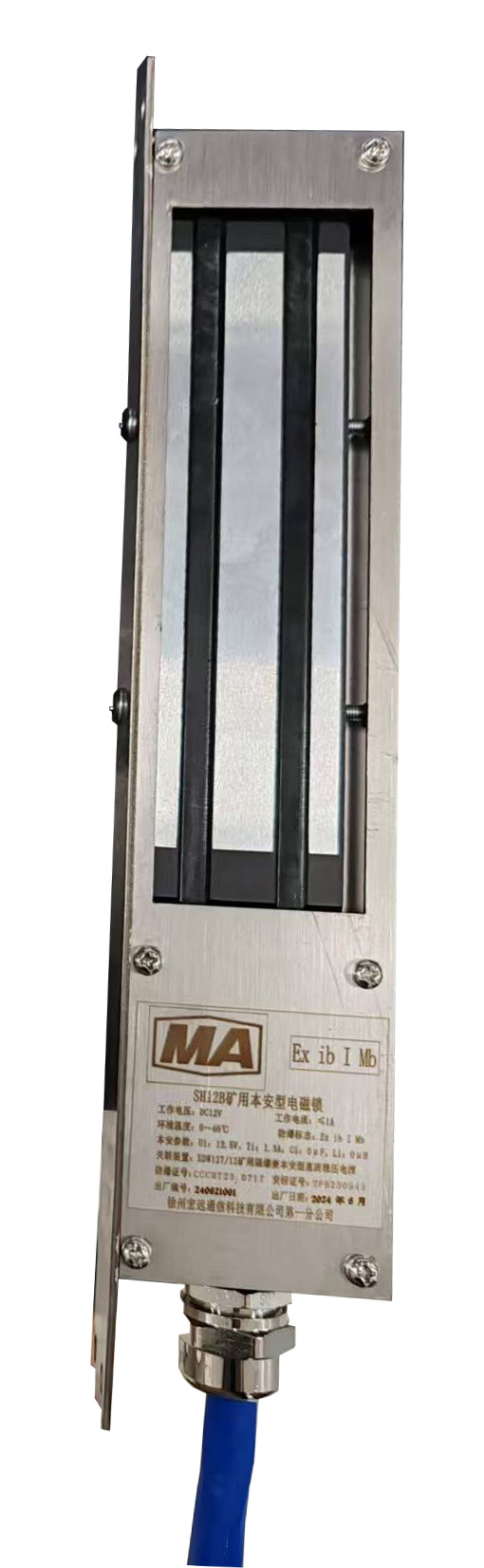 产品概述:此款设备上电即有磁,断电即无磁;电磁锁由主体及钢板组成,当钢板由远及近移动,距离为5mm以内时吸合。当钢板与主体距离为200mm以外,则无法吸合。