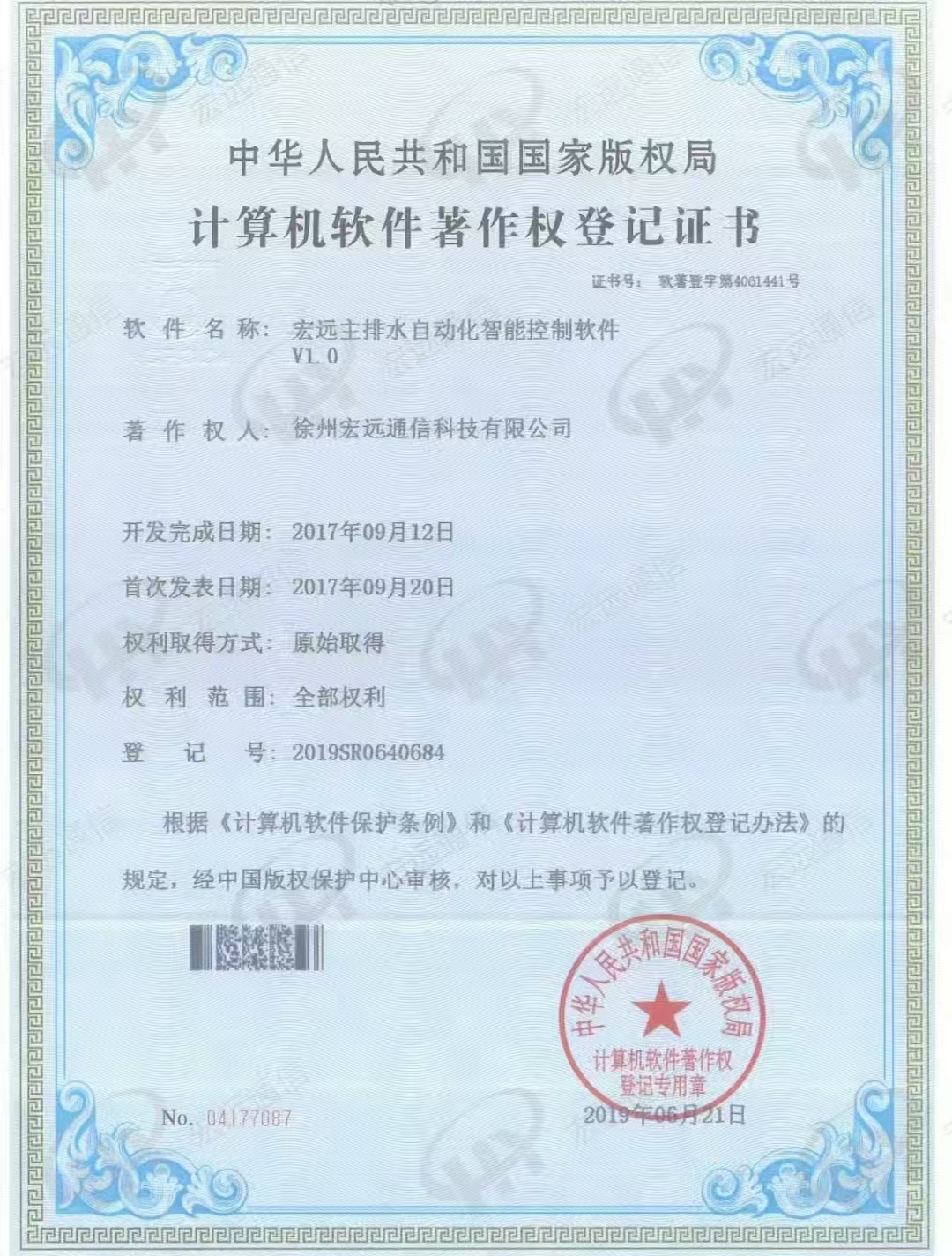 软著 宏远主排水自动化智能控制软件
