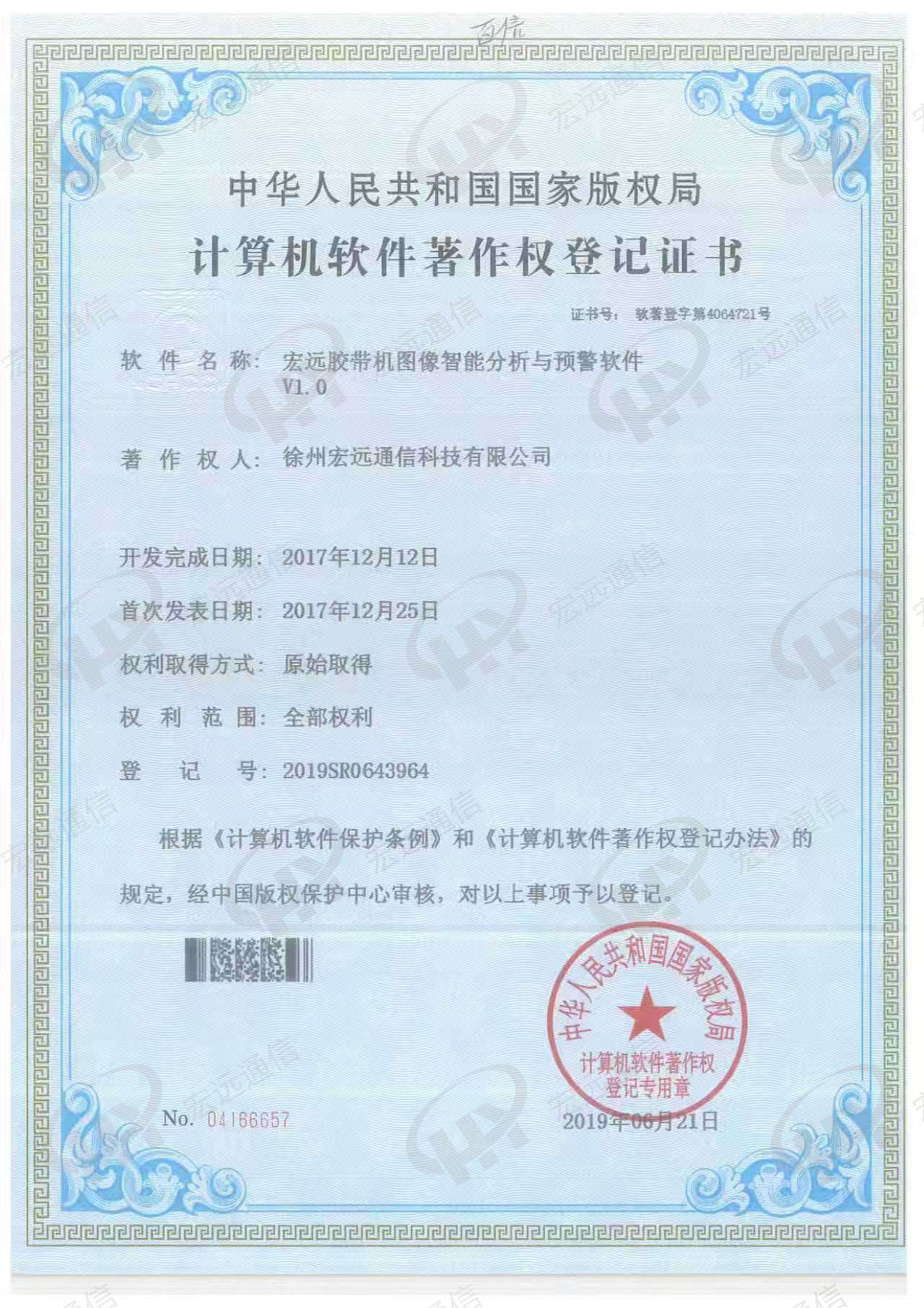 软著 宏远胶带机图像智能分析与预警软件
