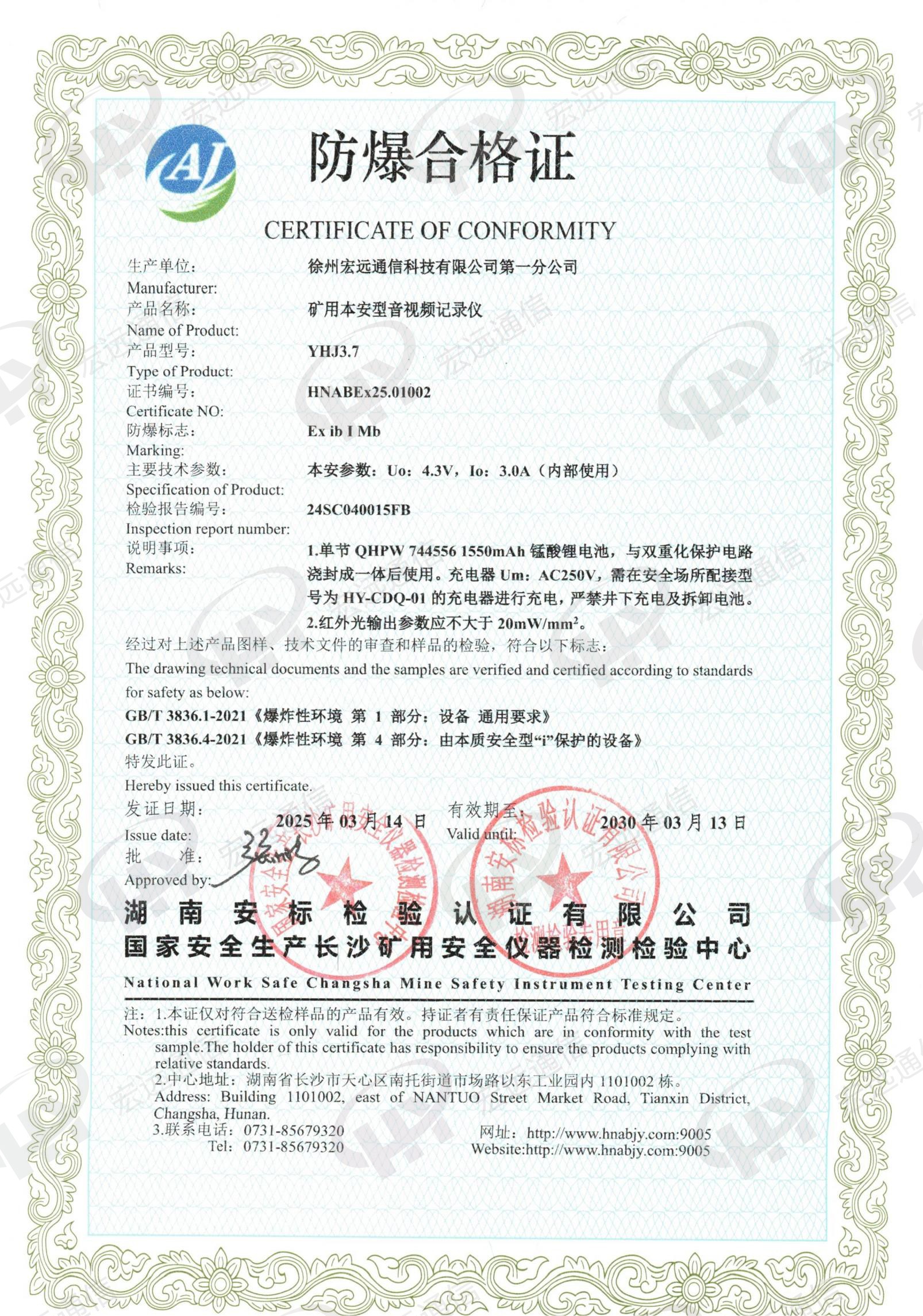 矿用本安型音视频记录仪 YHJ3.7 防爆证