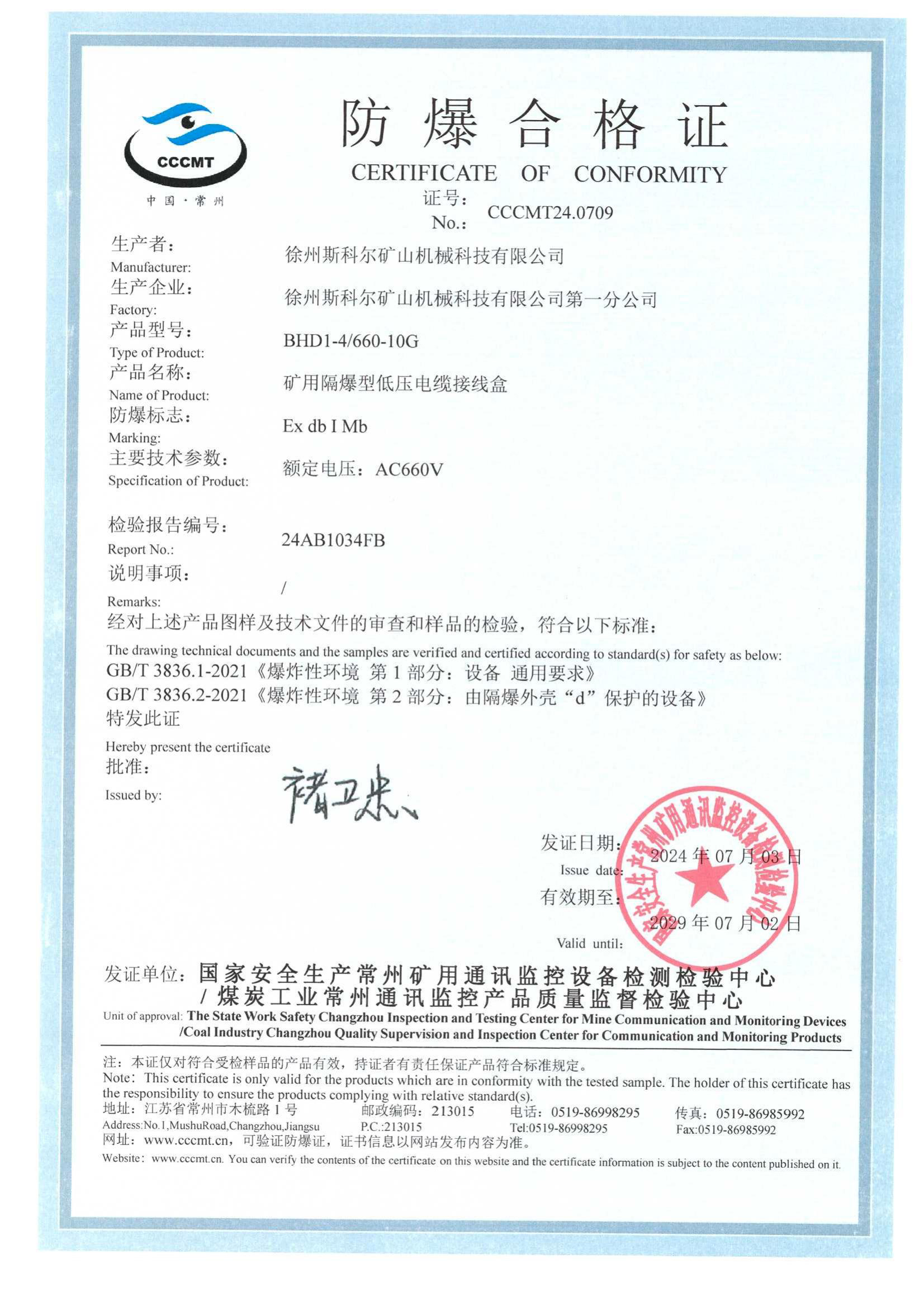 矿用隔爆型低压电缆接线盒BHD1-4/660-10G 防爆证