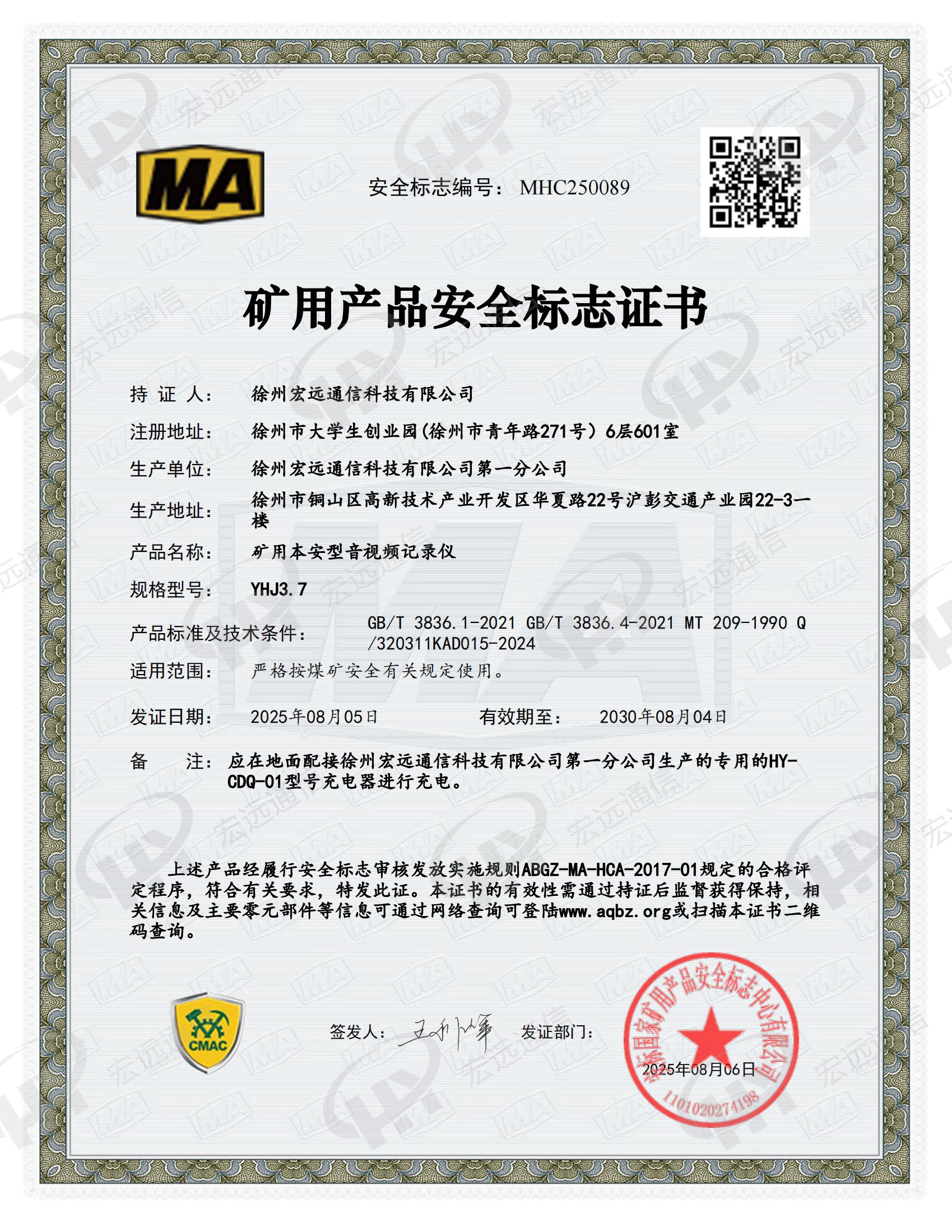 矿用本安型音视频记录仪YHJ3.7(MA认证)
