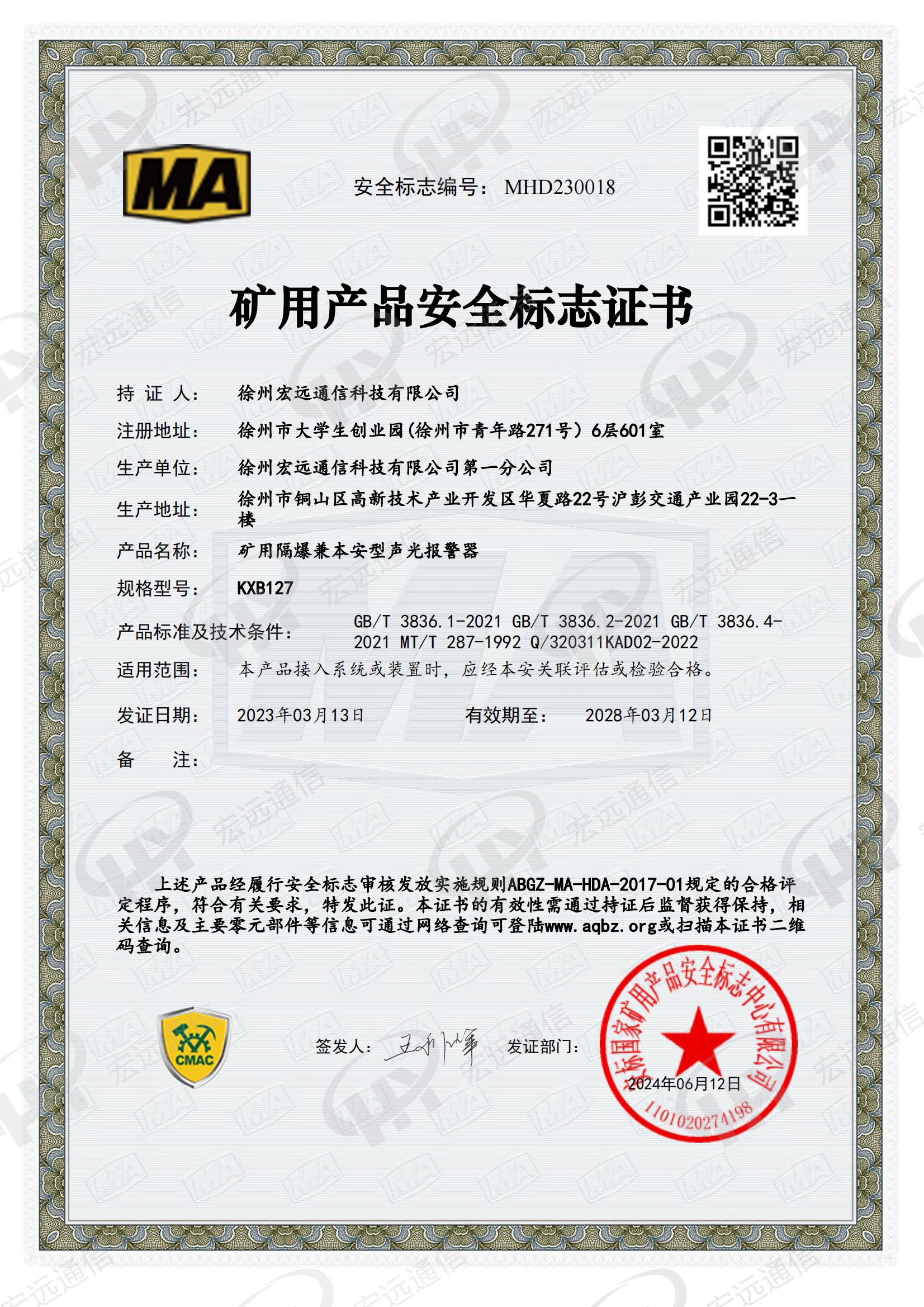 矿用隔爆兼本安型声光报警器KXB127(MA认证)